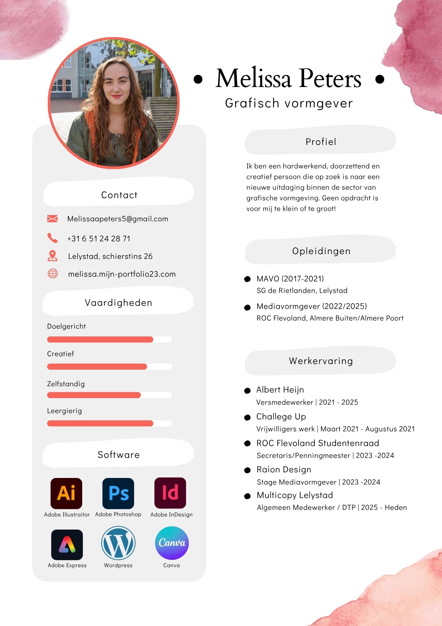 Leer mij kennen! Bekijk hier mijn CV. Neem contact op! Naam Emailadres Bericht Verstuur Lelystad, 8226 TL, Schierstins 26 06 51 24 28 71 melissaapeters5@gmail.com FollowFollowFollowFollow